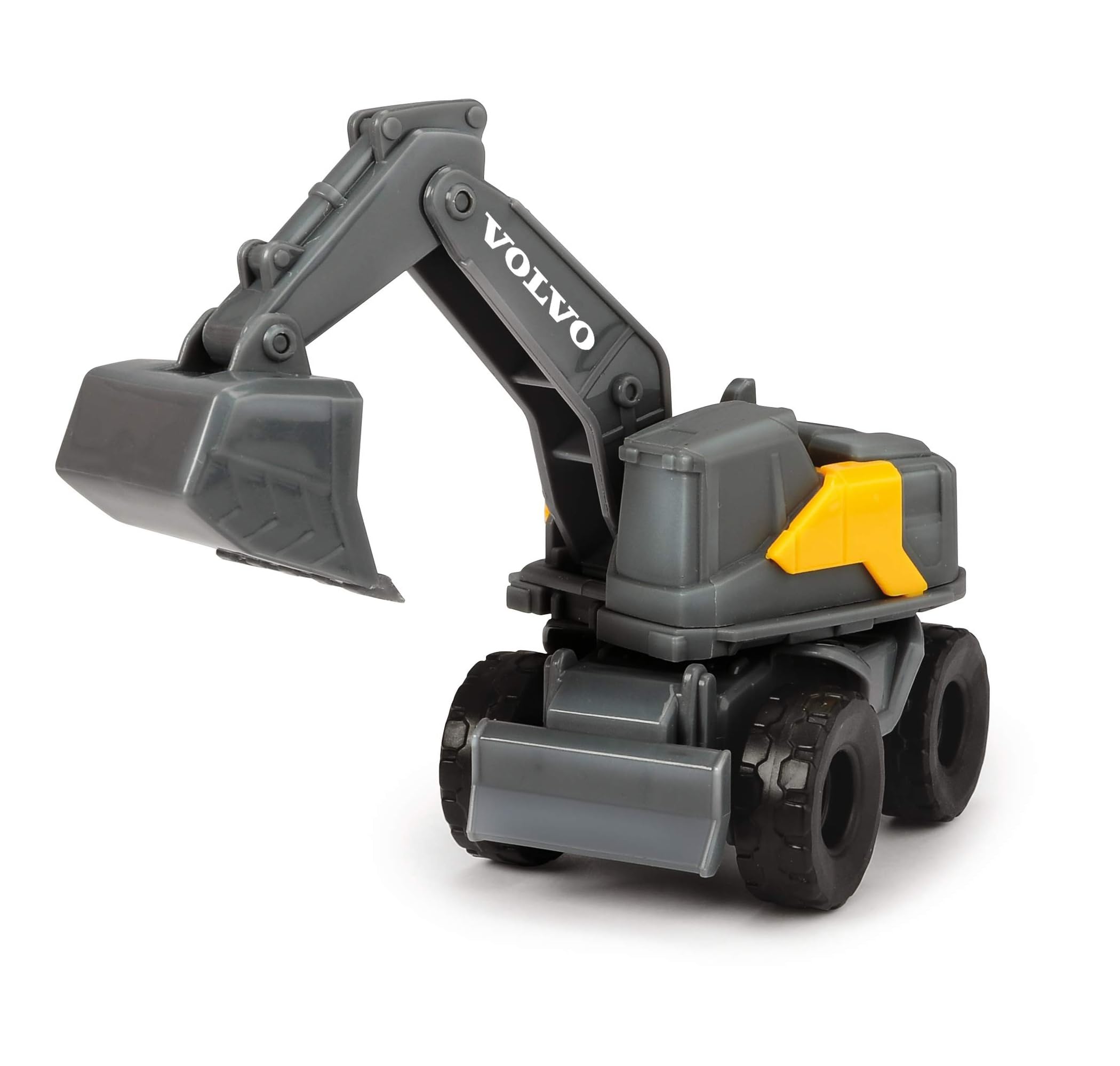 Dickie Toys Volvo Micro Workers 5er Set Baustellenfahrzeuge (je 10 cm) – Kinder Bagger Spielzeug, Radlader & Muldenkipper Auto Spielzeug mit Freilauf, Fahrzeuge ab 3 Jahren, gelb/grau – 203722008